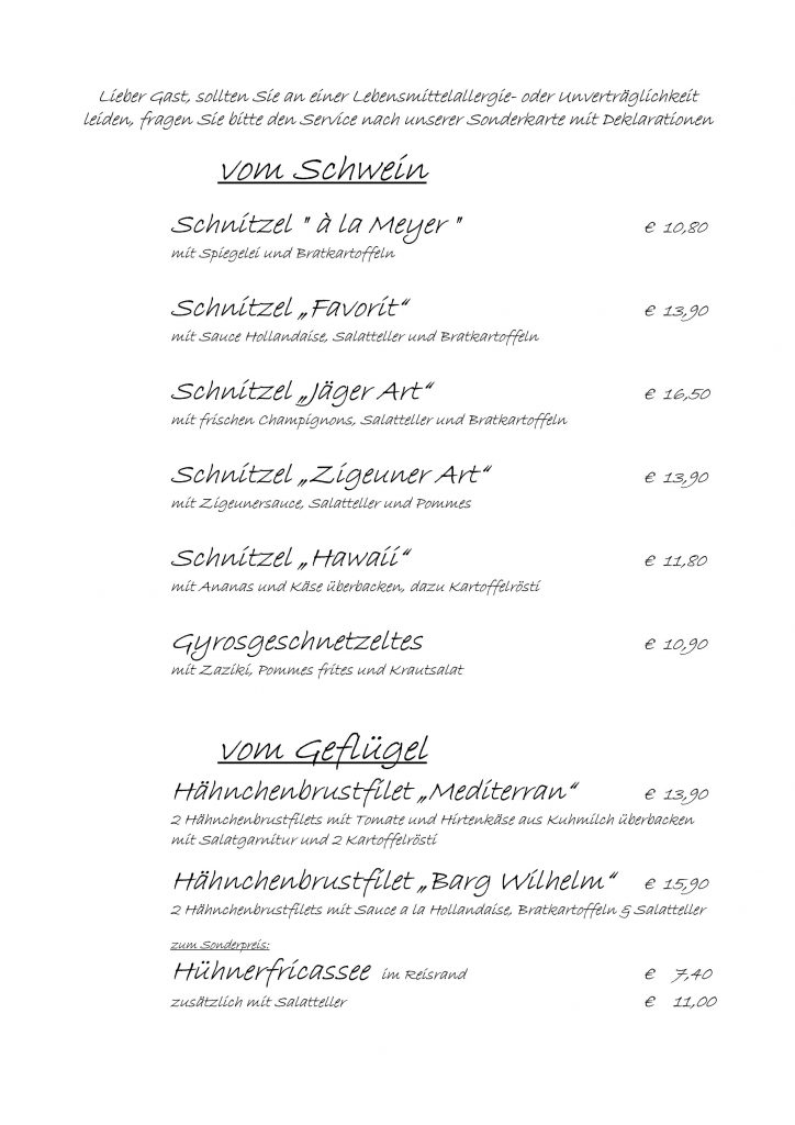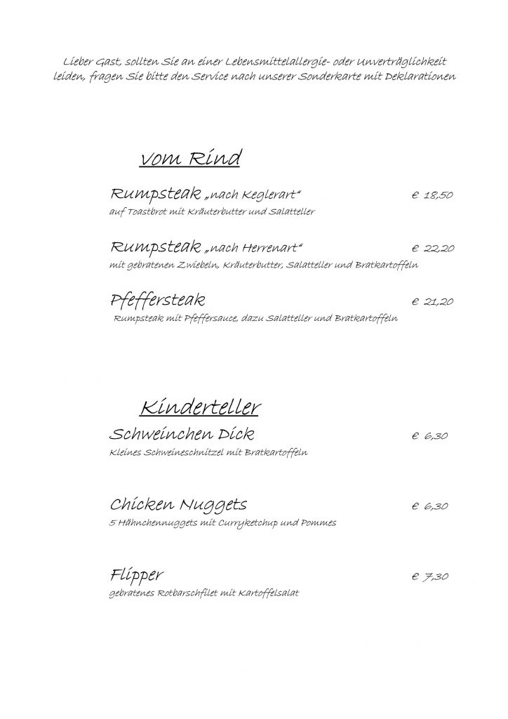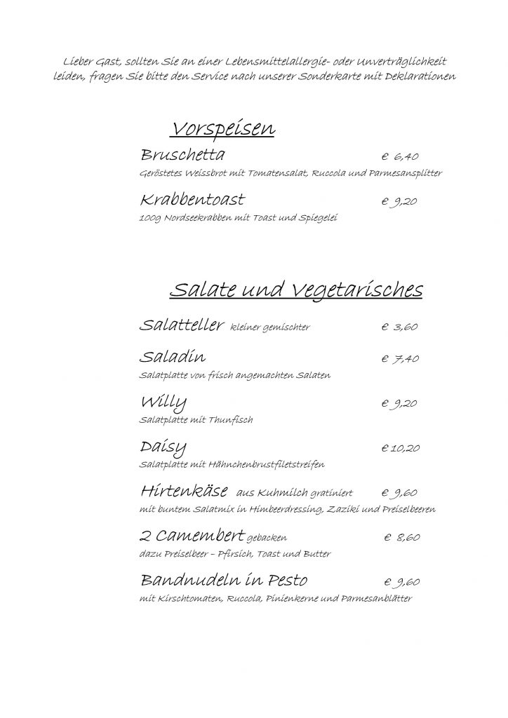 • Speisekarte